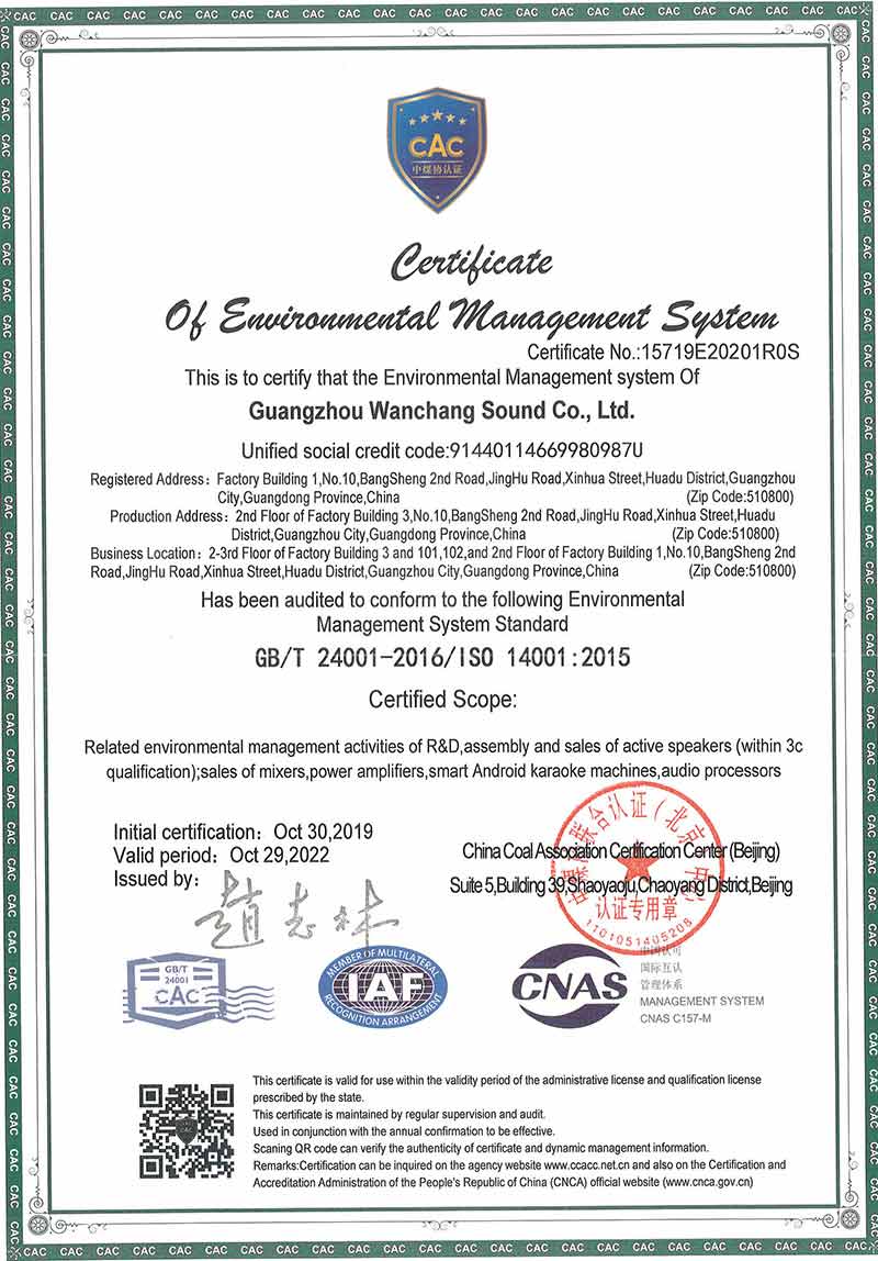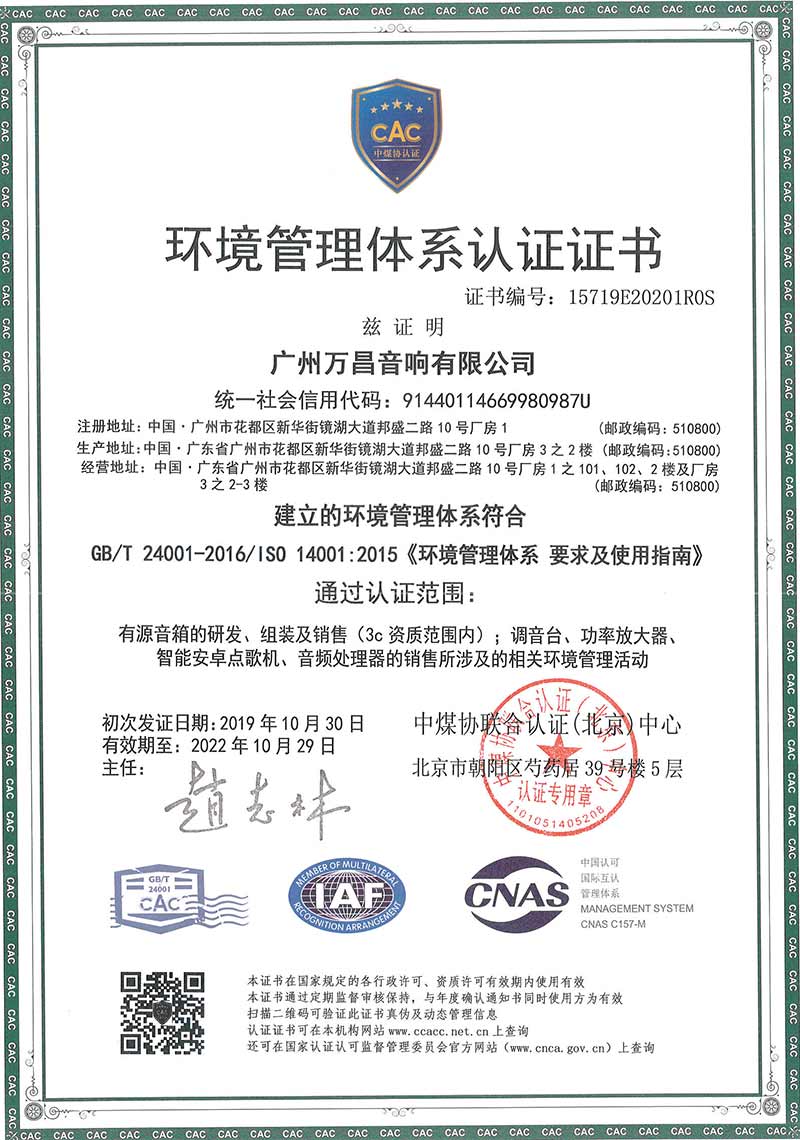 爵士龍-環(huán)境管理體系認(rèn)證證書