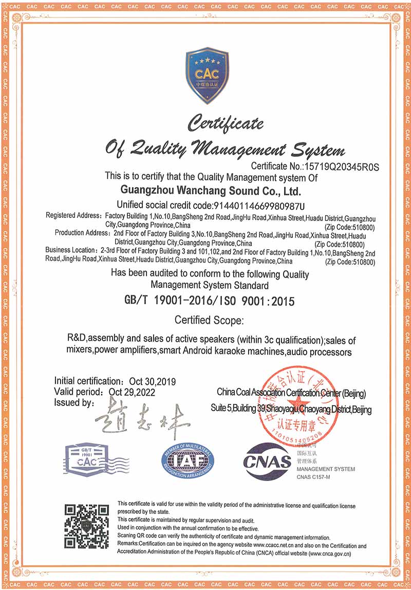 爵士龍-質(zhì)量管理體系認(rèn)證證書