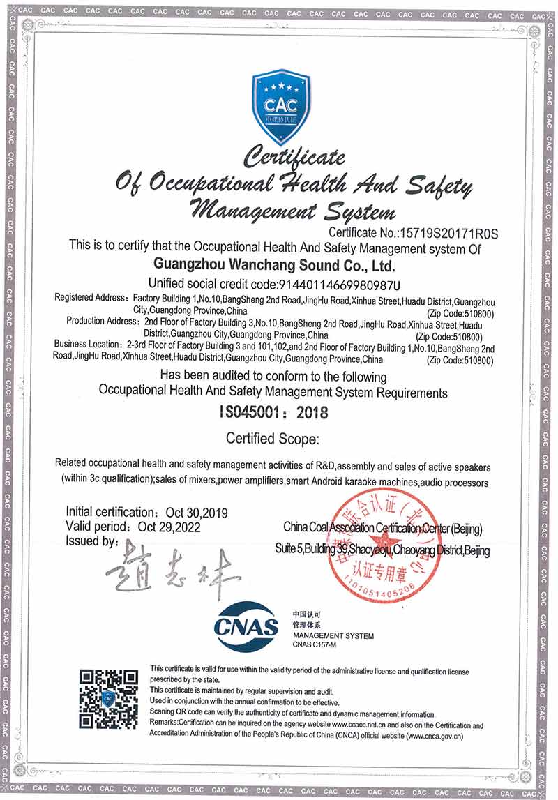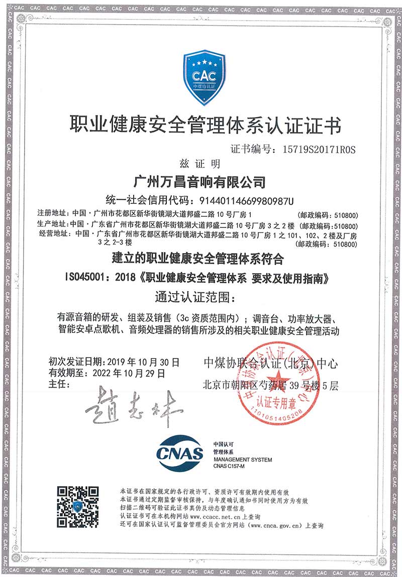 爵士龍-職業(yè)健康安全管理體系認(rèn)證證書
