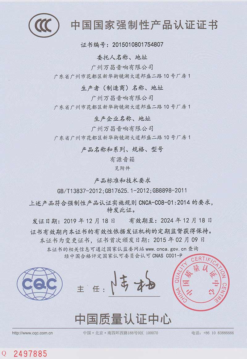 爵士龍-中國國家強制性產(chǎn)品認(rèn)證證書