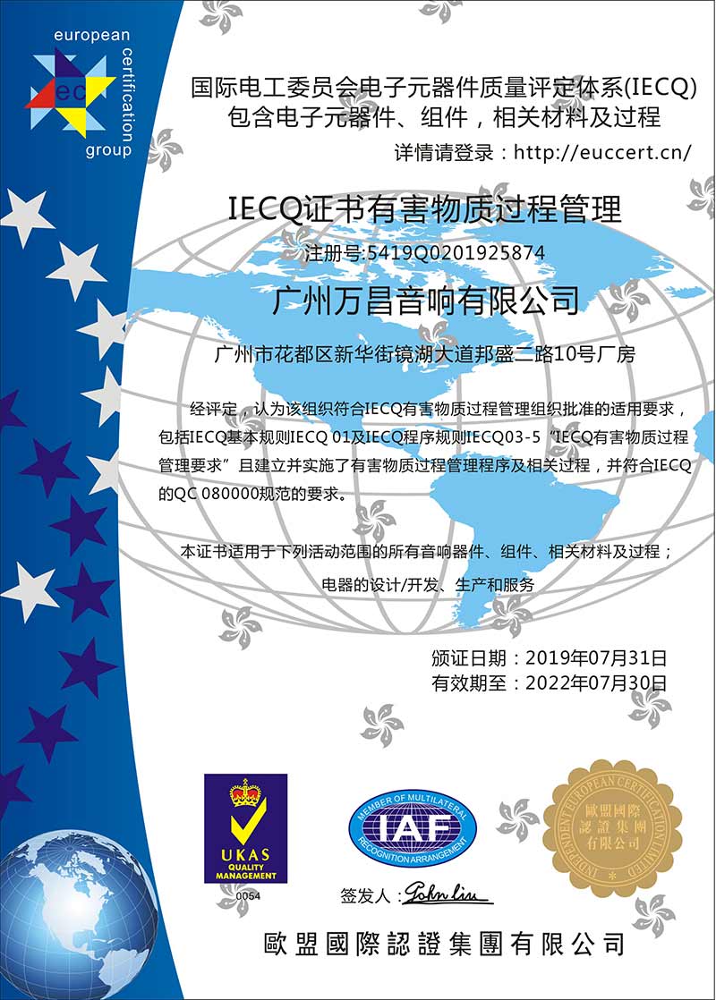 爵士龍-IECQ證書有害物質(zhì)過程管理